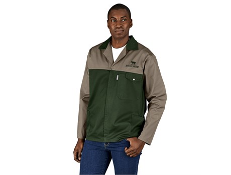 front and back contrast yoke • open neck collar • front yoke panel • concealed zip • chest pocket features V-flap with press stud closure and pen pocket